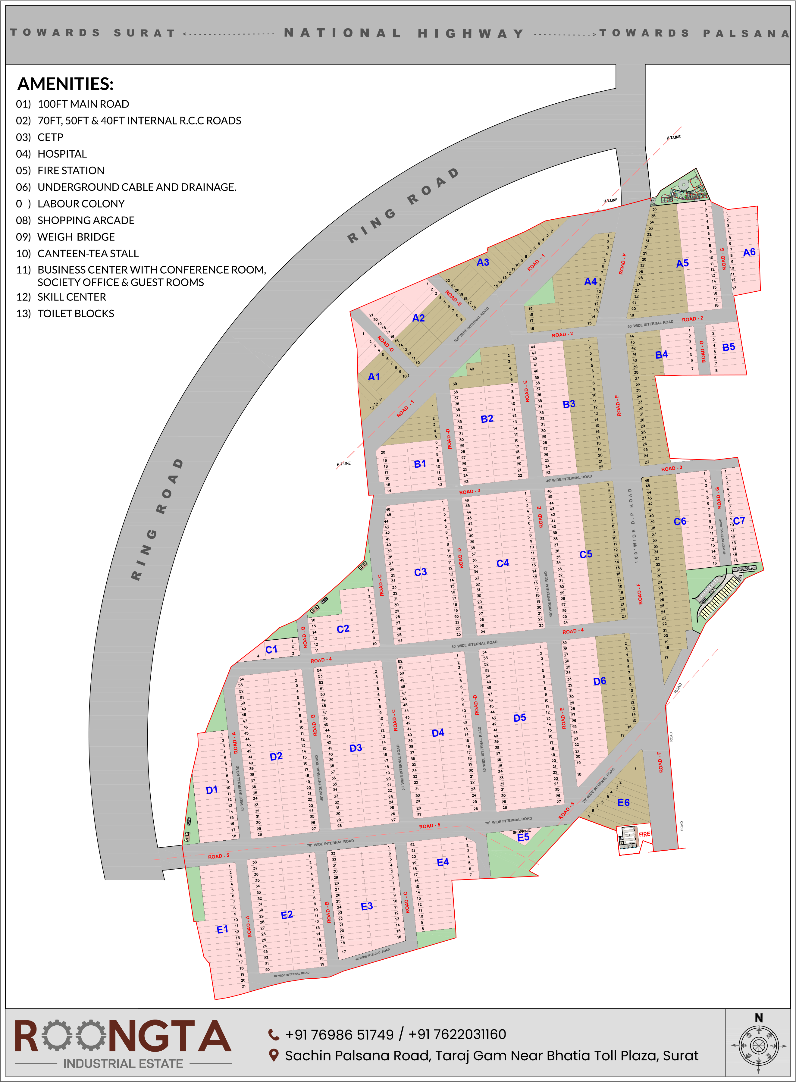 Strategically located on the Palsana-Sachin Highway, within the Surat city limits, this project is carefully planned to support business growth by offering modern infrastructure, essential facilities, and operational convenience.